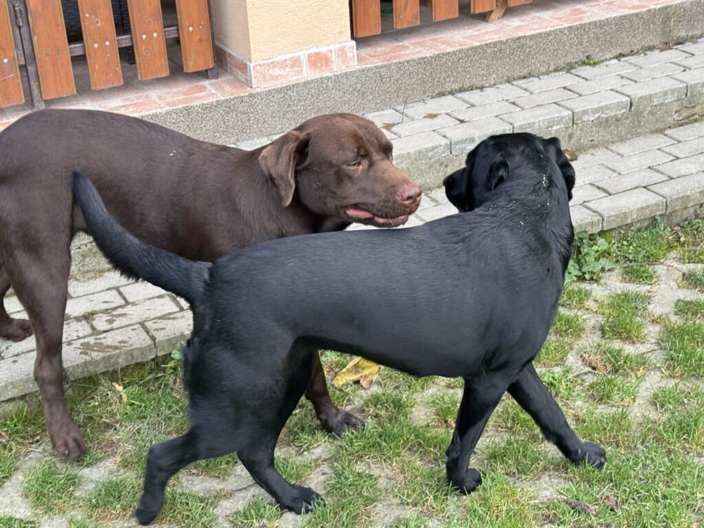 Két labi együtt olyan, mint két bohóc a porondon: kergetőznek, birkóznak, közösen ássák ki a kertet, és mindig úgy tesznek, mintha „a másik kezdte volna”.